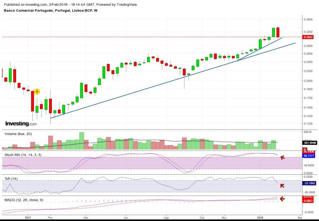 Mas é preciso manter a perspectiva: há um ano, a 6 de Fevereiro de 2017 o BCP cotava a 0,173€ (ainda caiu para 0,145€ depois disso). A 31 de Dezembro de 2017 cotava a 0,272€. Quase 100% num ano e quase 10% num mês não são rentabilidades desinteressantes para quem investe.