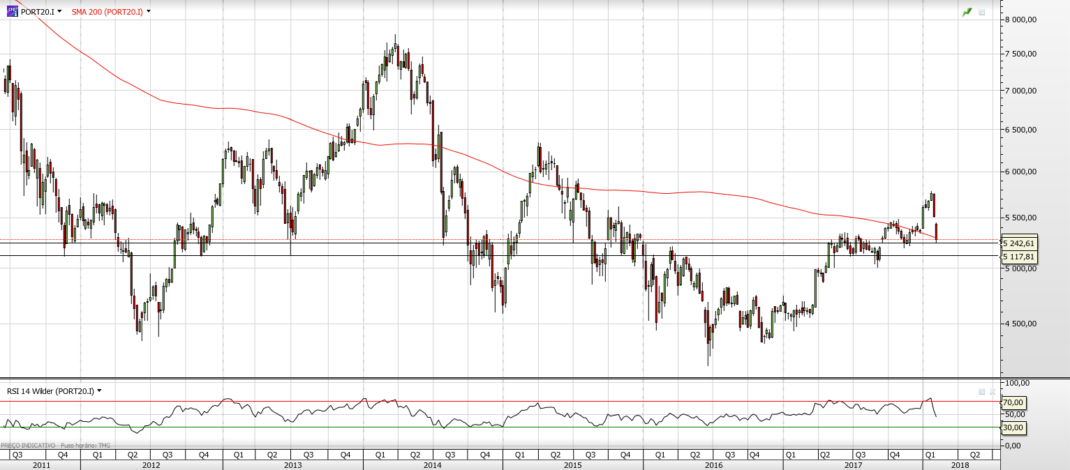 A MM200 diária no PSI nos 5330 , os investidores bull, vão tentar ao máximo fechar a semana acima deste nível.