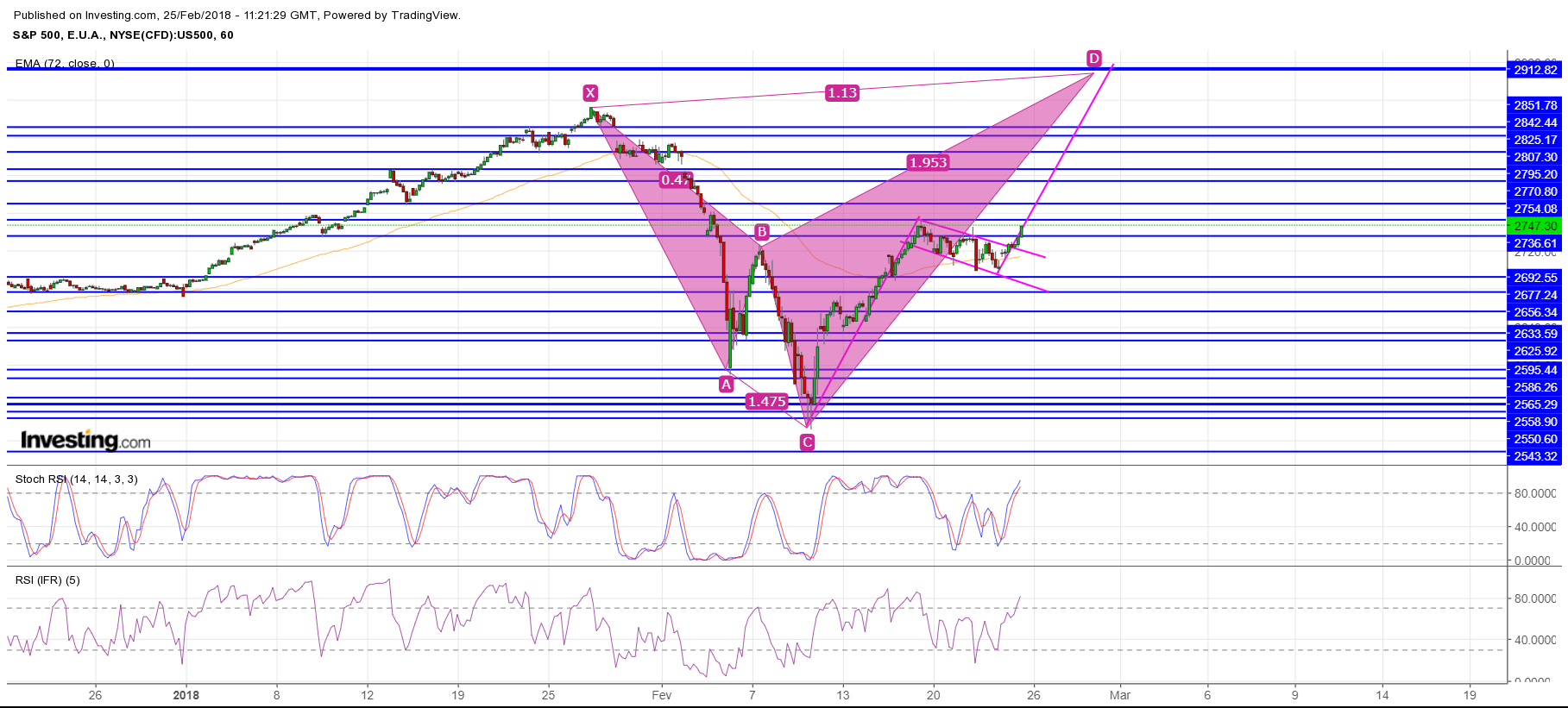 Formou-se aí um fundo com um aparente H&S invertido, só que a subida desde os 2737 parece um ABC perfeito com um topo nos 2753.