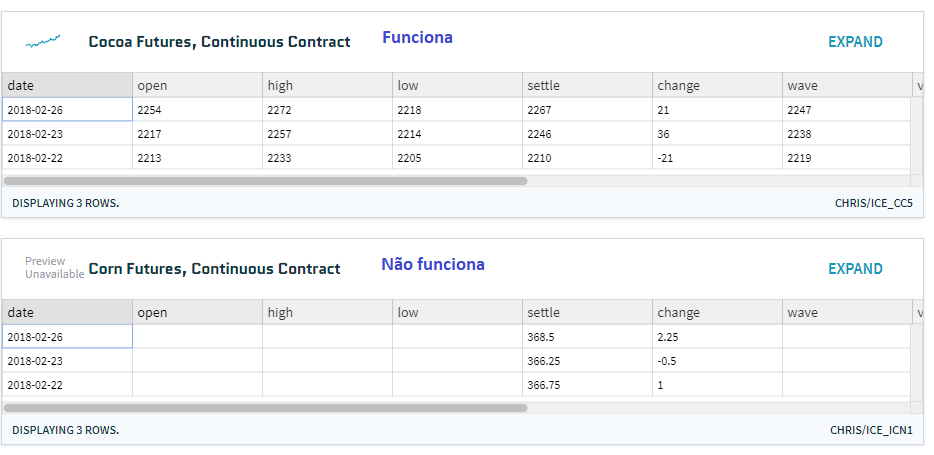 Quando fizer a integração com o quandl vai abrir todo um mundo novo, seja pelo uso da KEY pessoal seja por ter acesso a muitas outras coisas. https://www.quandl.com/search?query= (clicar em free do lado esquerdo)