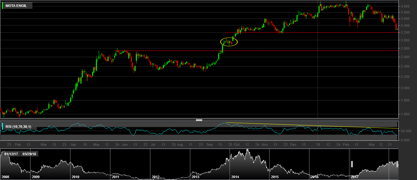 Se ultrapassar num futuro próximo em baixa a MM200 nos 3.20, as perspetivas de medio prazo mudam e poderá visitar o suporte seguinte nos 2.30 euros .