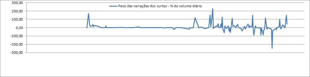 Recalculei o indicador e continua a acontecer em dias consecutivos haver volumes dos curtos maiores que o volume do dia.