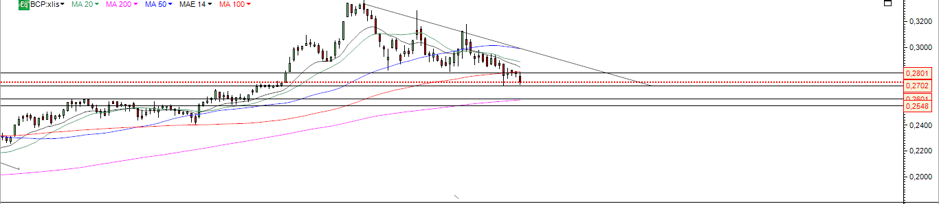 BCP poderá estar a aguentar aqui com ajuda EUROSTOXX 600 banca .