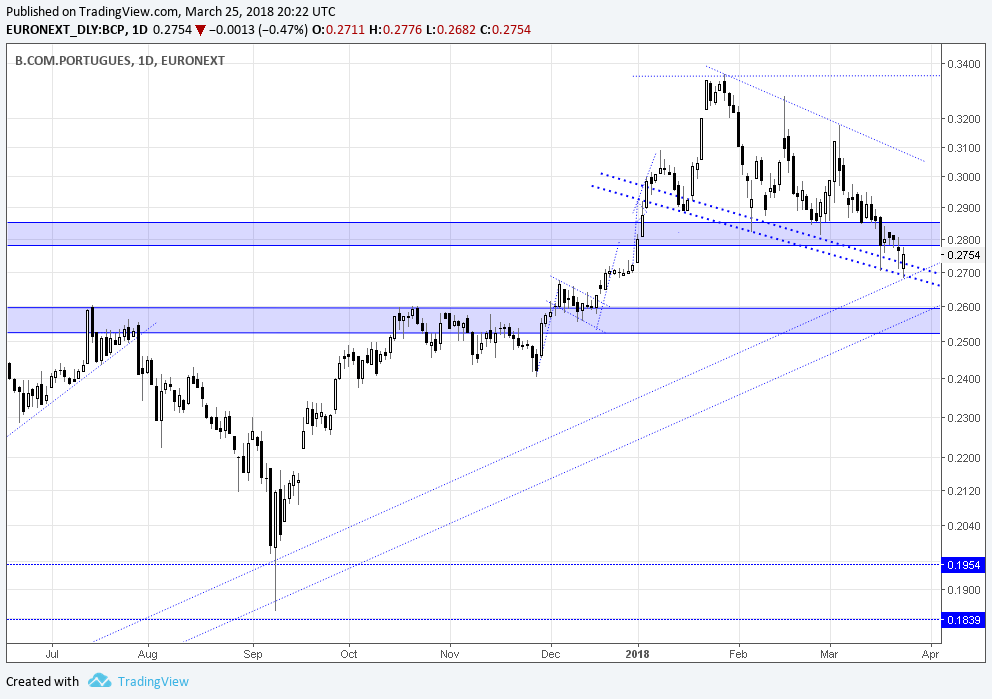 Pela análise técnica o BCP está na " no man's land ". Tanto pode cair como subir, mas está longe de suportes ou resistências.