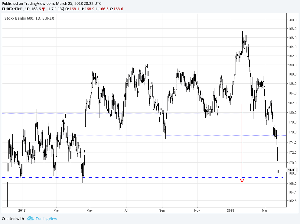 Ao estar integrada no EUROSTOXX poderá sofrer efeito negativo de curto/medio prazo , pois EUROSTOXX banca , está já abaixo de um importante suporte e se não inverter rapidamente pode visitar níveis bem inferiores , o que poderia ser negativo para BCP acompanhando o setor na Europa .