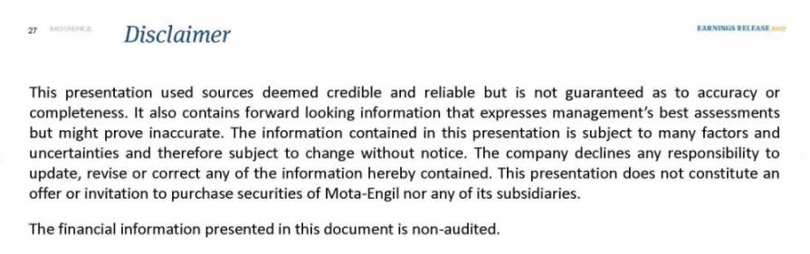 Este disclaimer é uma Recomendação/imposição da CMVM e não uma opção das cotadas. A Galp tem sempre um disclaimer preventivo e tem sentido para as empresas não serem processadas por darem estimativas que depois não concretizam. Por isso só se responsabilizam sobre o passado, visto que afirmações sobre o futuro: não valem nada.