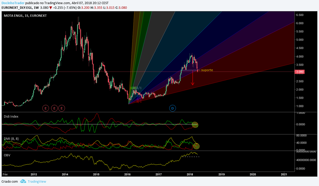 Continuando, a Mota abatendo estes dois máximos relativos pode novamente voltar a ser uma ação ganhadora e partilhar bons ganhos claro. Fica o gráfico.