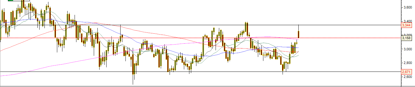 O gap de 29 de Setembro foi fechado no dia 11 de Abril, no entanto, ficou um espaço sem negociação entre os 3,13 e os 3,085€.