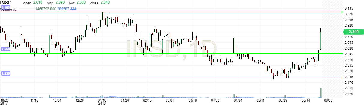 Nos últimos 3 meses a Inside Secure tem feito uma lateralização, e o volume tem sido bastante reduzido.