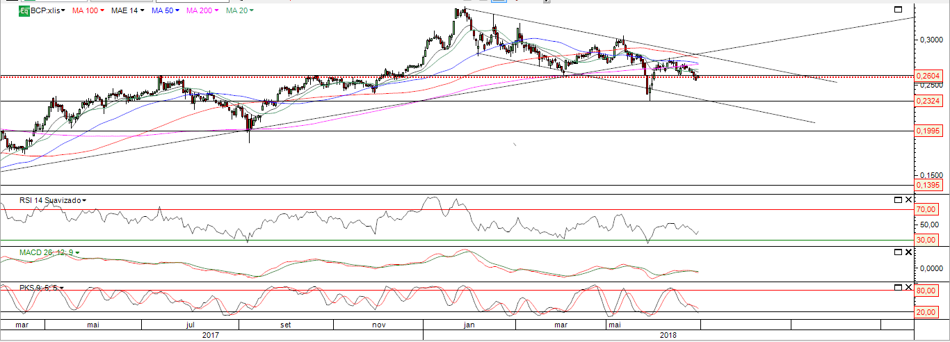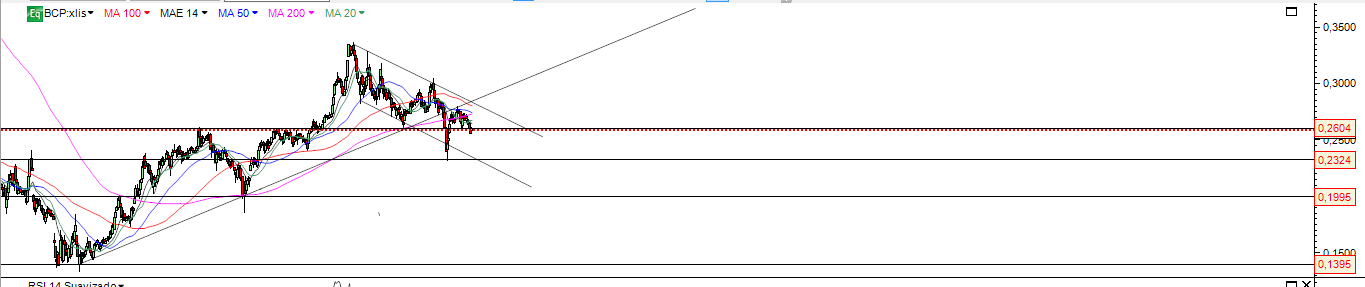 BCP desde janeiro não caiu 4,5% , caiu 21% desde os máximos ( 0.33 - 0.26 ) .