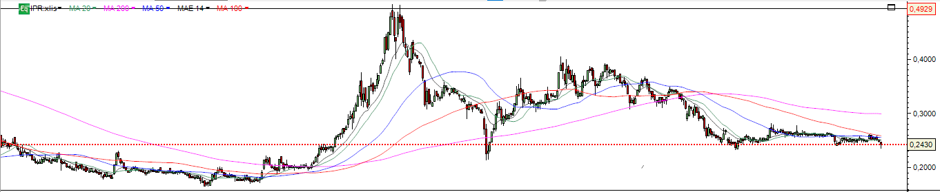 Hoje mais uma queda de 5%, o que não deveria surpreender ninguém face aos valores a que cotou durante mais de meio ano, entre os 0.17 e 0.20 , e desde ai a nível fundamental nada mudou , logo o expectável é que o preço se dirija para o preço sustentado muito tempo pelo mercado e pelos fundamentais .