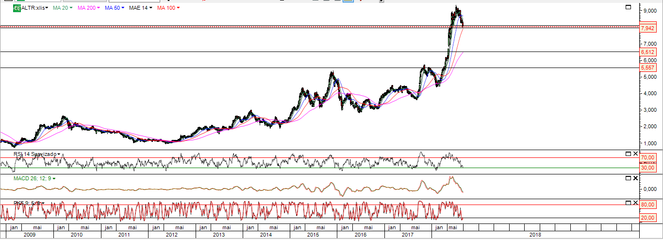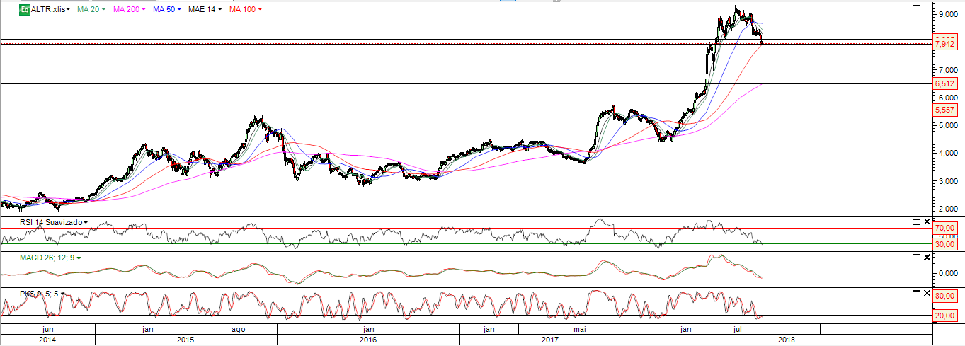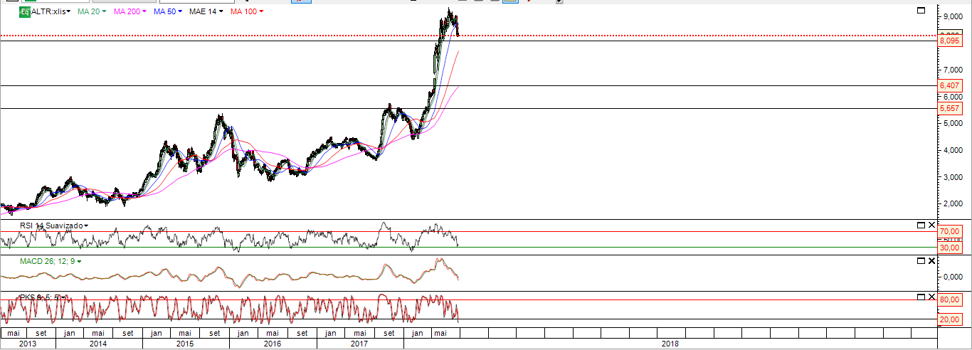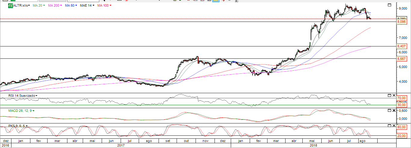 A ALTRI encontra-se abaixo da MM50 e em ligeira queda .