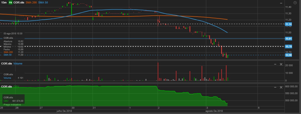 P.S. - Numa análise ao gráfico de 15 min que aqui coloco a minha conclusão é que há muito mais gente a tentar despachá-las que gente a tentar comprar. E isso, a meu ve´r, revela distribuição... Mas posso estar enganado, gostava era de saber porquê.