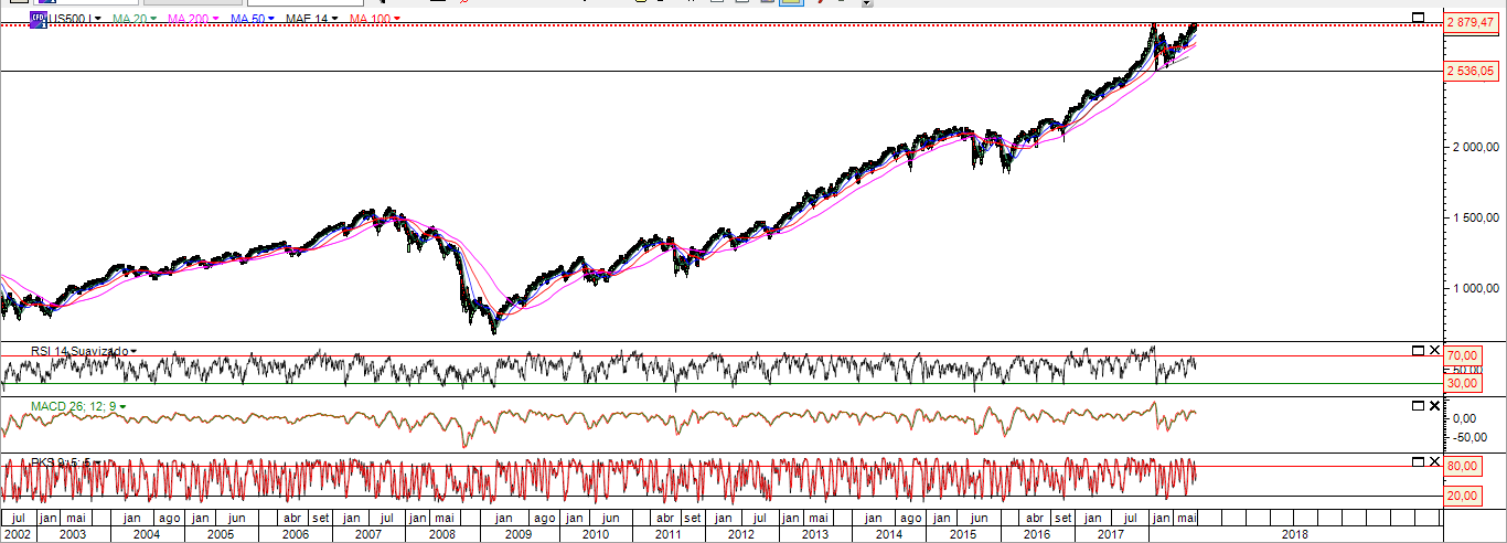 SP500 teve máximo nos 2872 , até final agosto pode andar nesta zona ou ligeiramente acima , mas o mais provável face a todos os fatores conhecidos é em Outubro existir uma forte correcção .