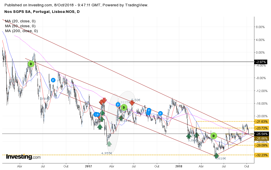 No meu entender, a cotação da NOS encontra-se a testar uma resistência em torno de 5,20 euros.