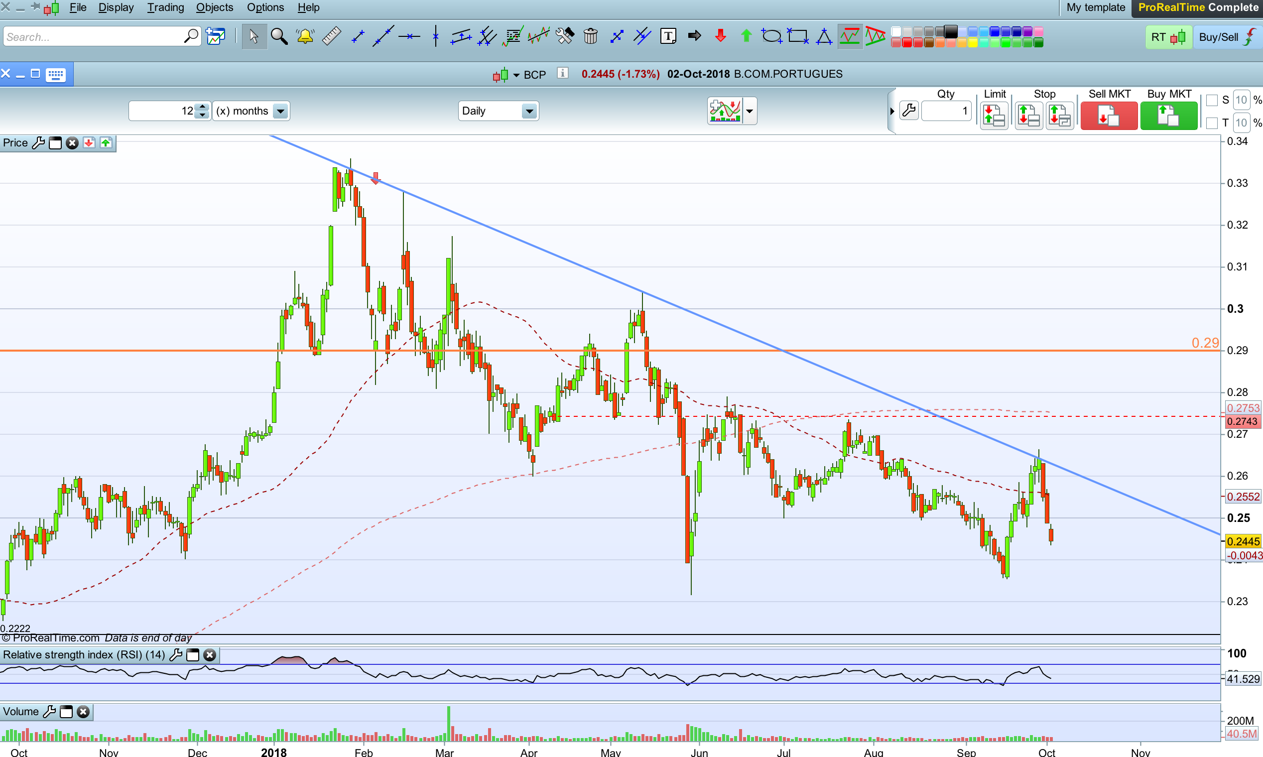 BCP após a recuperação desde os 0.2350 , tem os indicadores técnicos STK e RSI ainda elevados , pelo que em termos técnicos ainda tem muita margem para quedas para valores inferiores.