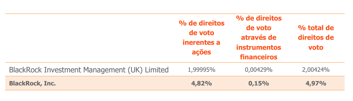 2 Hipótese que Blackrock possa potencialmente estar vender , estando abaixo dos 5%, não tem de comunicar