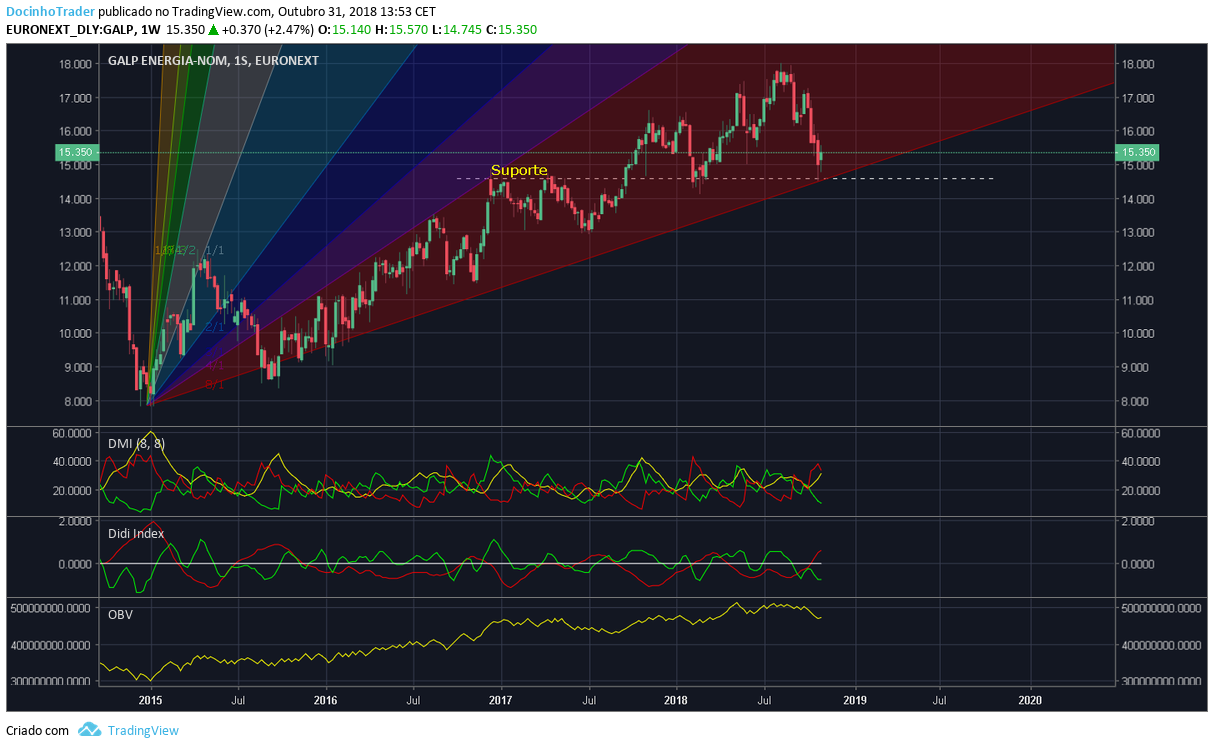 Após a galp ir milimétricamente ao suporte referido dos 14.60€ está a repicar.Era importante reagir nesta zona a fim de manter o bull market,no entanto preocupa-me ainda a distribuição no semanal e este já vendido nos indicadores. Se romper em baixa novamente os 14.60€,um abraço e venha de lá os shorts. Até lá é rezar para se manter acima destes valores.
