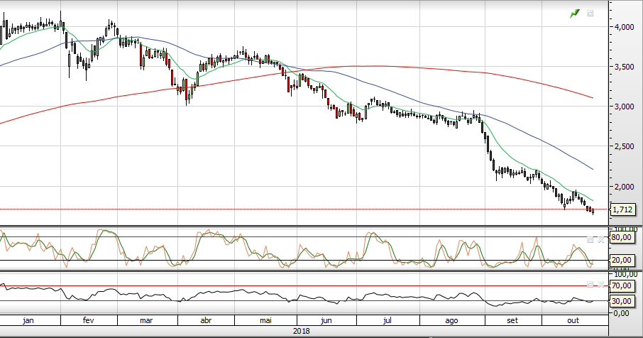 A mota está agora em zona de suporte que me pareçe bastante importante e olhando ao nivel de sobrevenda pode reagir em alta já daqui.