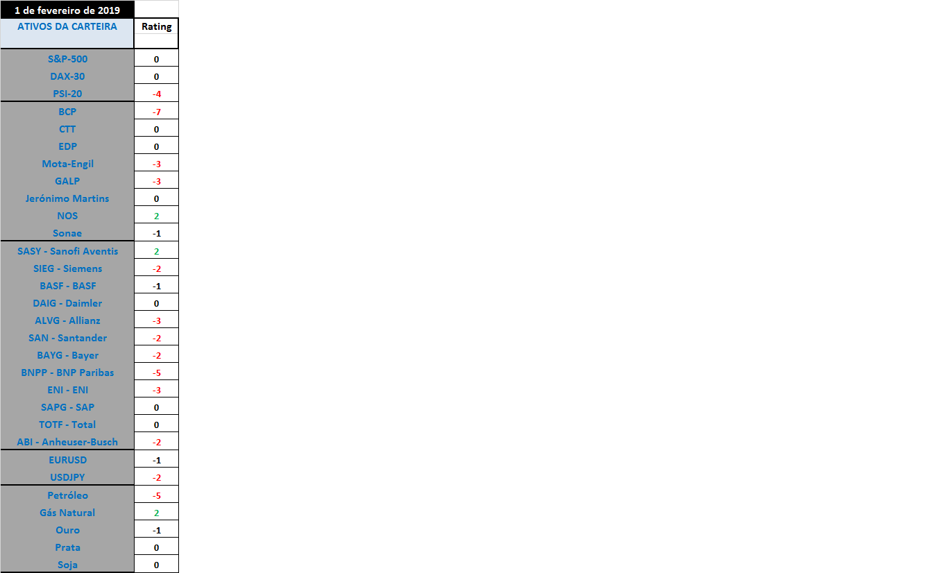 A única alteraçao registada na carteira aconteceu no Ouro, que passou de neutral a comprado.