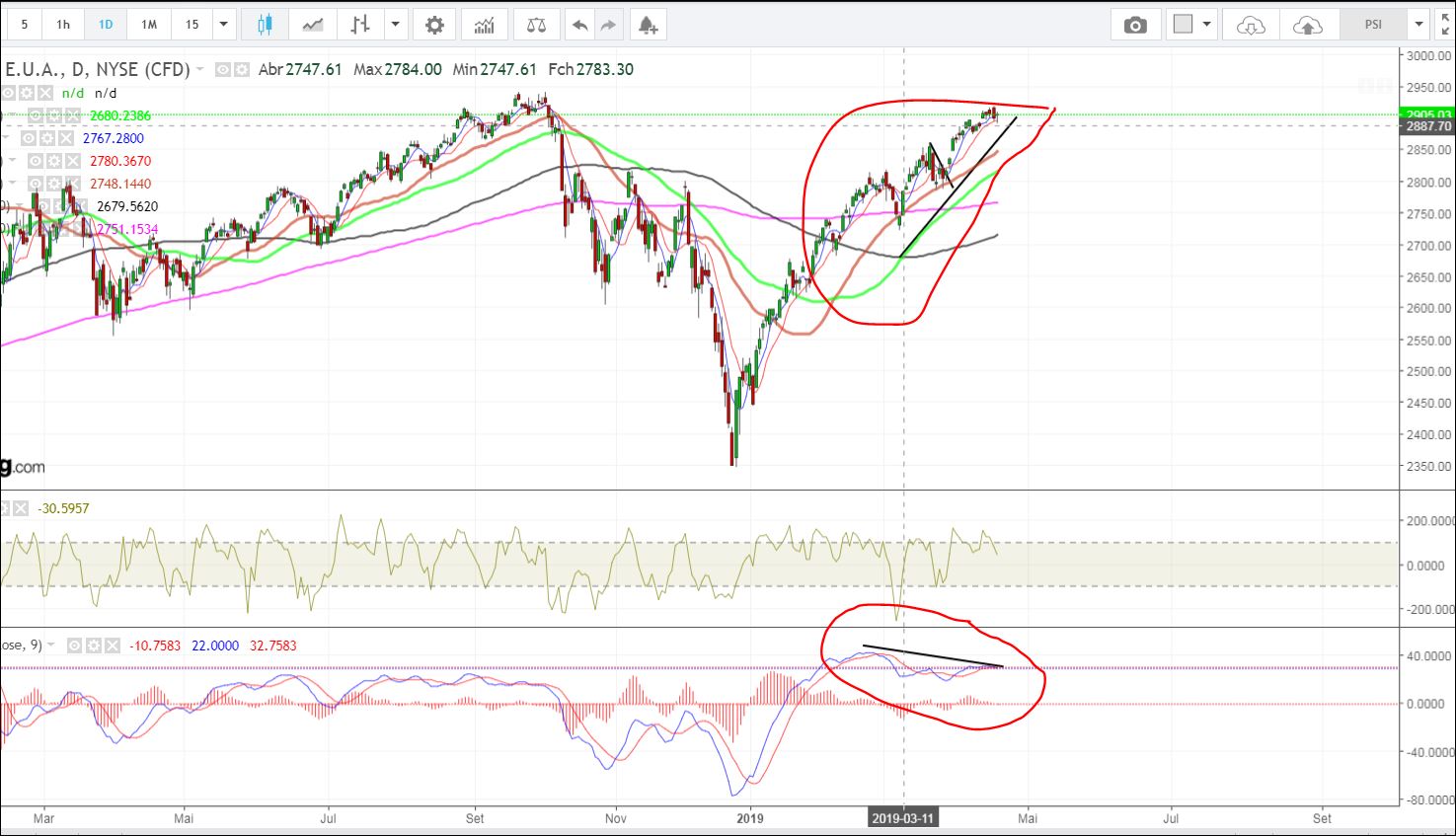 Sem Acordo comercial durante pelo menos mais alguns meses , sem suporte de compra das empresas das acções próprias durante 1 mês e sem nada de extraordinário da reunião da FED , tudo me leva a pensar que mercado não vai ultrapassar esta resistência e vai recuar até meados de abril sem compras fortes no mercado neste período .