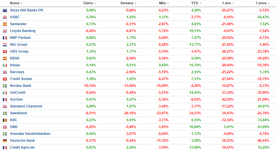 Pesos pesados do stoxx 600 banks.