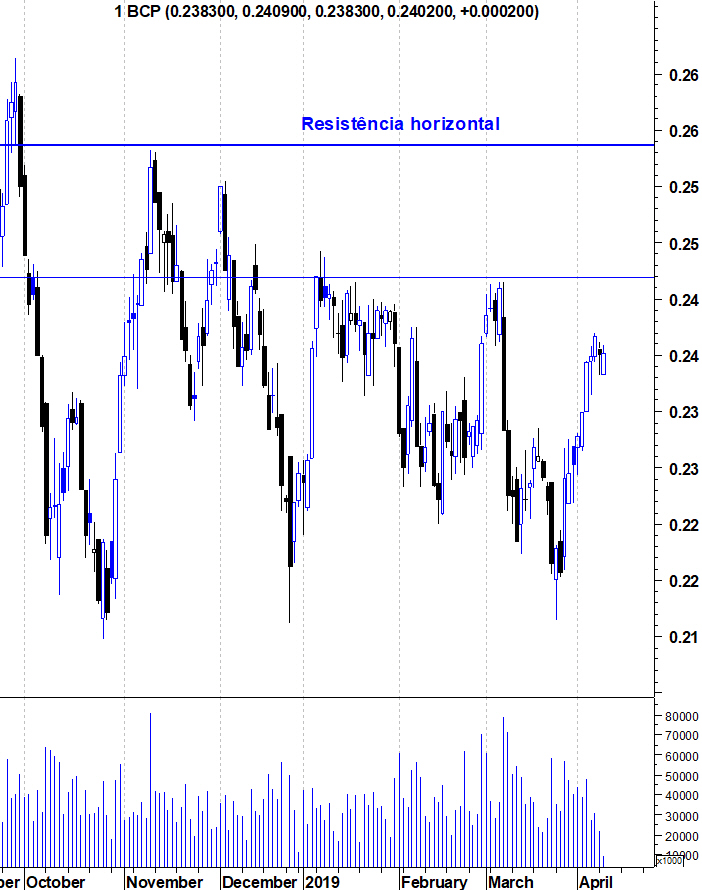 Mesmo após a recente recuperação o bcp ainda cota abaixo de valores de há um mês atrás.