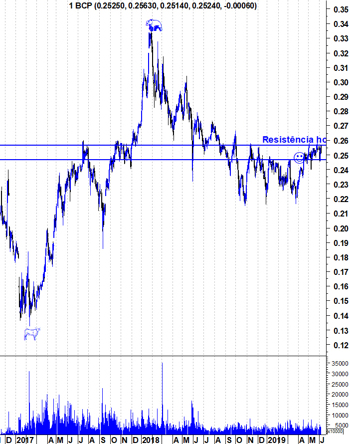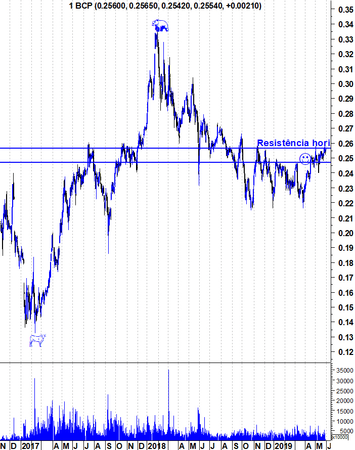 Mesmo a tocar na resistência. O BCP recuperou a confiança e não fosse os outros problemas no setor financeiro os investidores já teriam recuperado também as suas posições.