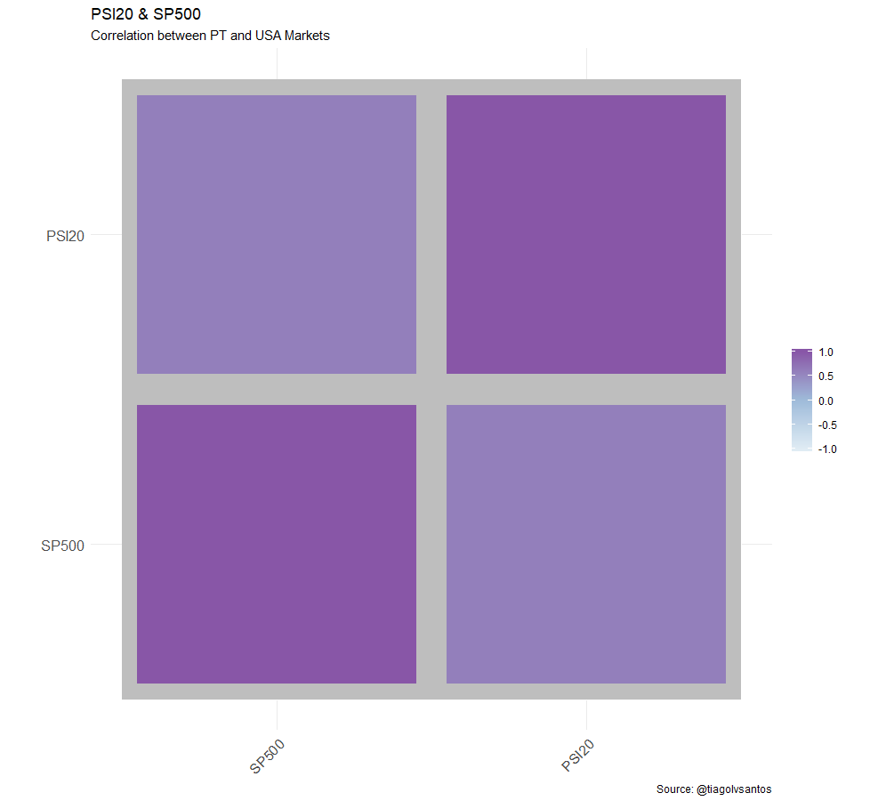 A titulo prático vamos tentar correlationar o mercado PT retratando o PSI20 com o ETF PGAL e o mercado americano com o SPY e o EUSA