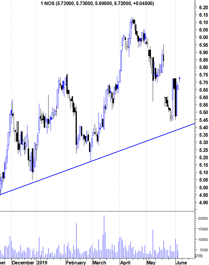 A Nos parou a correcção dos últimos meses na sua zona de suporte nos 5,7 euros. É importante para que os touros mantenham o seu domínio defender esta zona e, sobretudo, manter a linha de tendência ascendente intacta. Recordo que tem sido a existência desta linha que me tem feito estar optimista na Nos nos últimos meses.