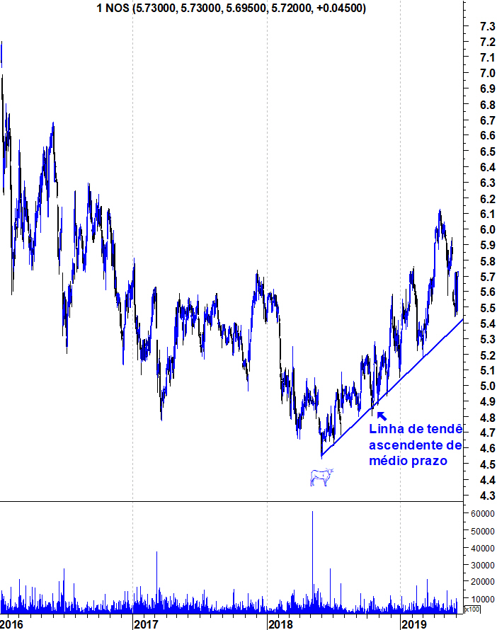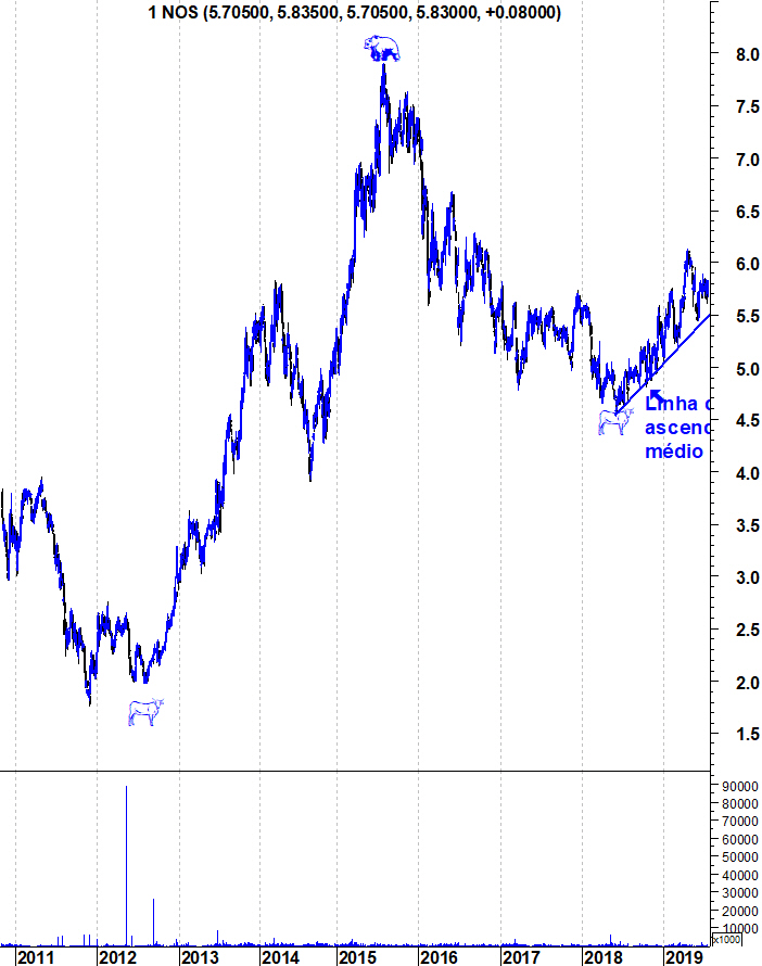 A Nos continua o seu "Bull Market" sereno, discreto. A sua grande referência continua a ser aquela LT ascendente que se pode ver no gráfico. Enquanto se mantiver intacta, mantenho o meu optimismo.