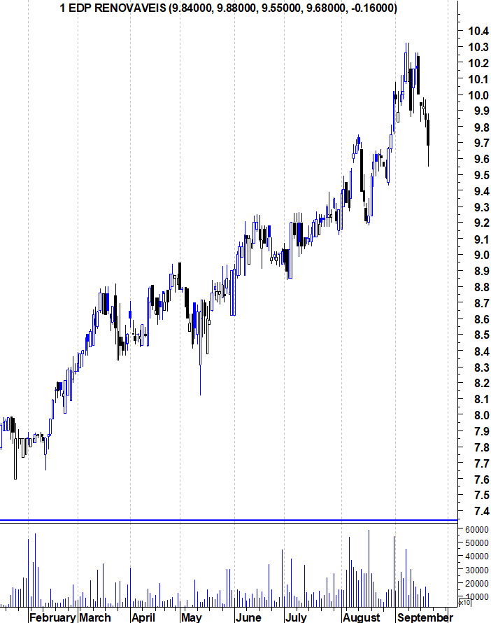 Antes de ir de férias, diziam que eu escrevia demasiadas vezes sobre a EDP Renováveis. A minha resposta era isso decorria de ser a acção com o "Bull Market" mais longo da Bolsa portuguesa. Já lá vão mais de 7 anos de "Bull Market". E apesar da queda da Bolsa portuguesa este Verão, a EDP Renováveis estabeleceu um novo máximo histórico.