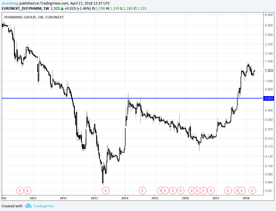 Nos ultimos dias, a Pharming subiu 20% devido aos excelentes resultados na 1a metade do ano.