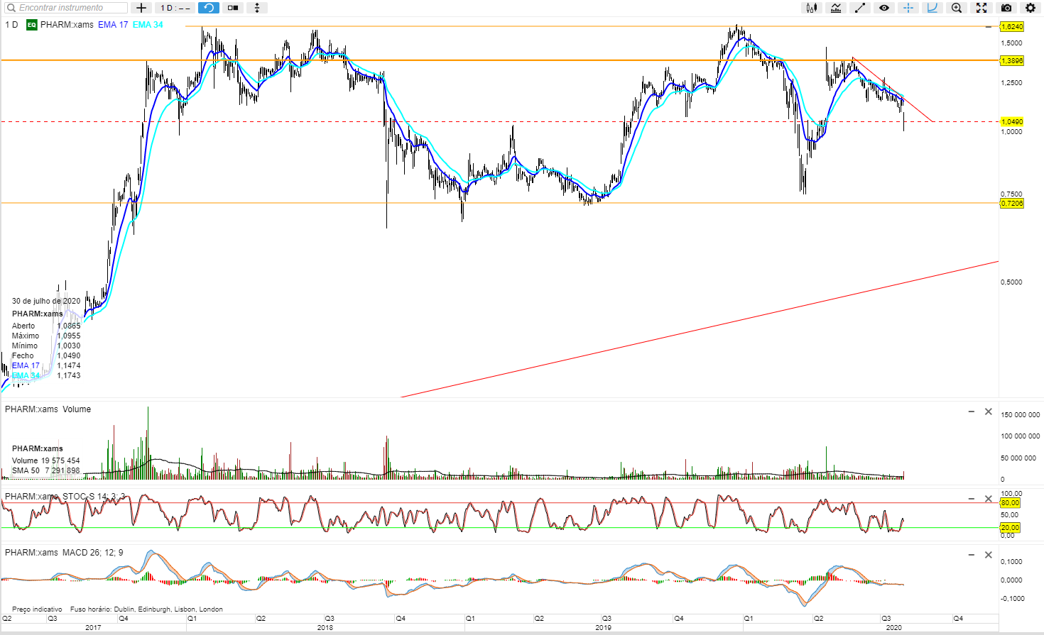 A Pharming continua a cair em direcçao aos 0.95... Tenho feito sempre bons trades com esta, mas desta vez falhei a analise... :roll: