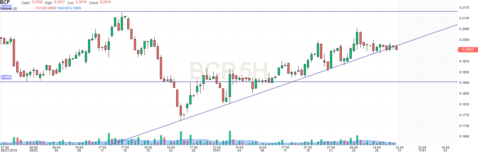 Neste momento numa altura que o BCP se mantêm ainda longe da resistência é importante que não quebre a LTA, ou pode inverter a tendência de subida que já leva quase um mês.