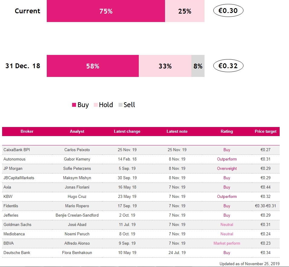 Só com uma OPA poderá atingir estes valores, contudo face ás projecções económicas para o próximo ano, juros baixos, ninguém se vai meter nessas aventuras... a Sonangol e a Fosun não andam aqui a dormir!!