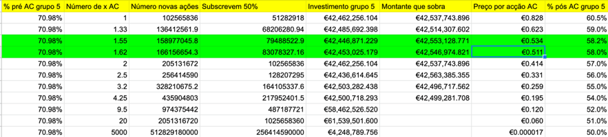 Um detalhe curioso é que no cenário 3B para os 5 terem mais de 50% após AC, e o Paulo Fernandes, Mário Ferrreira e Abanca terem juntos 51% forçosamente terão que investir mais de 20M€ cada o que vai ao encontro das notícias do Expresso.
