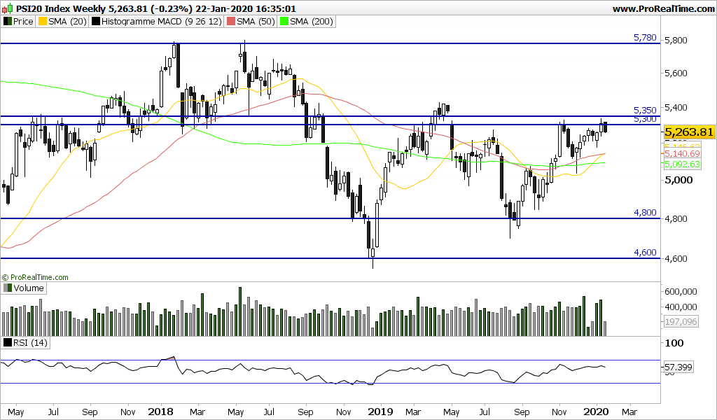 Nestas últimas 3 sessões, o PSI corrigiu muito ligeiramente, mas vai permitindo aliviar o RSI. Será interessante verificar se o índice depois voltar a atacar as resistências decisivas.