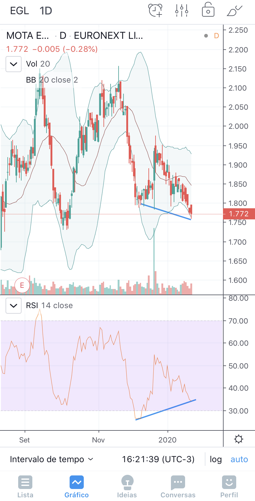 por ora a divergência entre o preço e o comportamento do seu oscilador de força relativa, poderá ditar o movimento futuro da cotação...