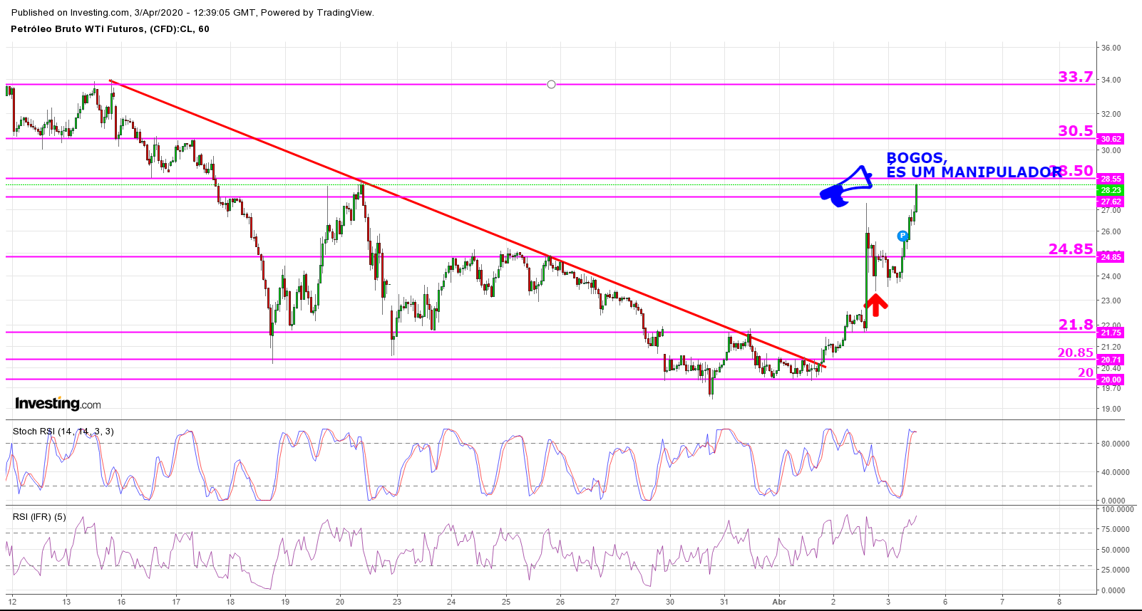 Mas mais preocupante é que esta subida está a ser alimentada pela suposta expetativa de acordo entre países e via tweets do Trump, o mesmo que até à pouco tempo diria com toda a convicção em alto e bom som que o coronavirus não era nada de especial e, portanto, até que ponto é que isto também não foi cozinhado para aliviar um pouco o mercado e produtores dos USA.
