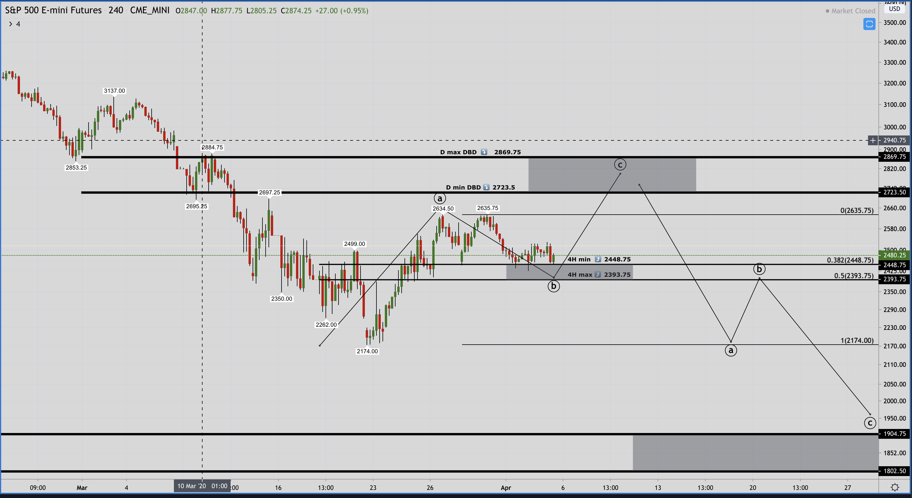 Bem, eu por mim não vou pôr boneco porque o meu é idêntico ao da maioria do pessoal, mas posso dizer a minha estratégia. Para mim, que estou curto neste momento (mas com stop que o bicho é maluco), acho que ainda vai pelo menos aos 2200. Mas calma, que para isso terá que quebrar a difícil zona dos 2400, é que parece que estamos em zona de luta bull/bear. Assim sendo, considero aqui 3 linhas importantes: horizontal nos 2400, se quebrar vai pelo menos aos 2200 e mantenho o curto. Quebrando os 2200, há logo ai os 2030; a LTD do diário que já aqui foi colocada, se quebrar fico neutro, com possibilidade de negociar o range 2400-2640, pelo menos até quebrar a outra linha horizontal relevante, que são o topo do range: os 2640, os tais do 38,2% fibonaci e da MM200 semanal. Se quebrar esta última, fico à espera de oportunidades para longos. E pronto, para os trades de curto prazo na volatina é esta a estratégia. Se é boa ou má, logo se vê no final.
