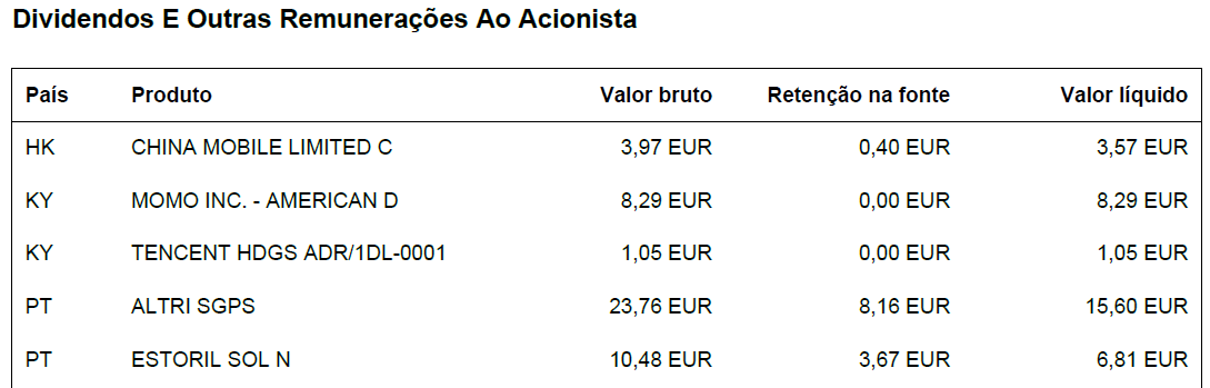 Só dará para colocar metade dos dividendos, de empresas Portuguesas, ou da União Europeia. HongKong, Russia, EUA não dá.