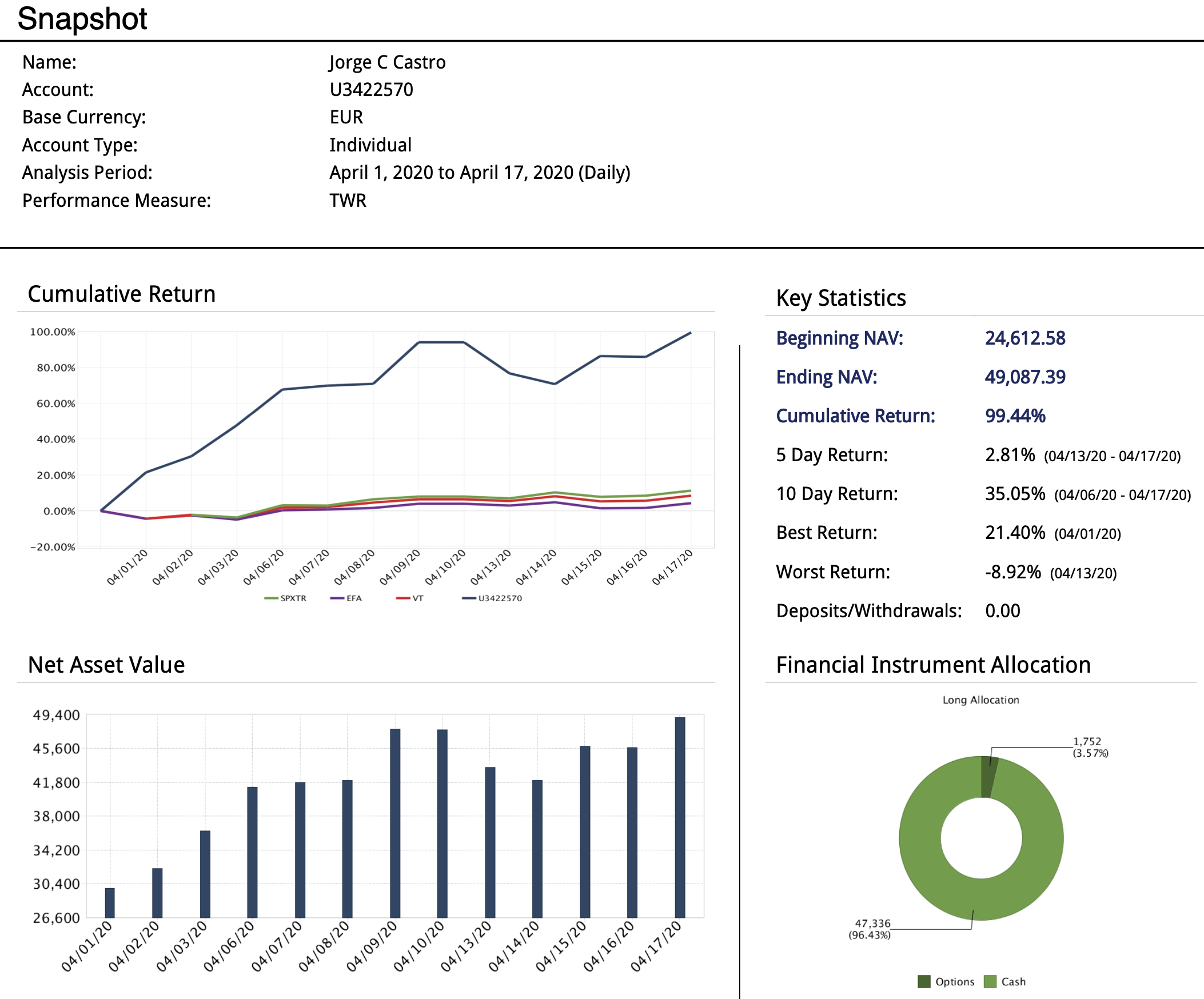 Jorge, em linha com o que temos feito desde a criação deste fórum (já lá vão 17 anos), não faz muito sentido teres um tópico assim em que colocas os resultados. Faz sentido, se fores comentando o que estás a fazer e o que te leva a fazer os "trades". Colocar se estás a ganhar ou a perder, sem sabermos o que andas a fazer não acrescenta nada ao Caldeirão. O que é pena porque já se percebeu que tens bastante a acrescentar em termos de conteúdo.