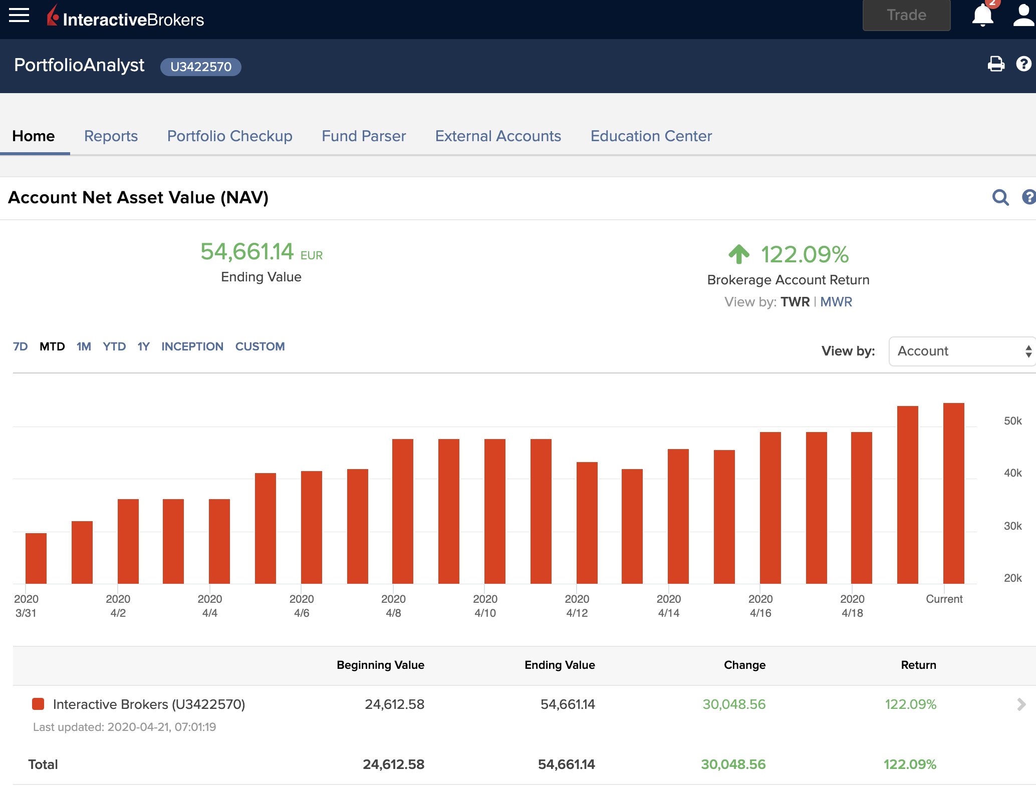 Resultado de mais um dia (tipicamente só trabalho 2f,4f e 6f). Month To Date.