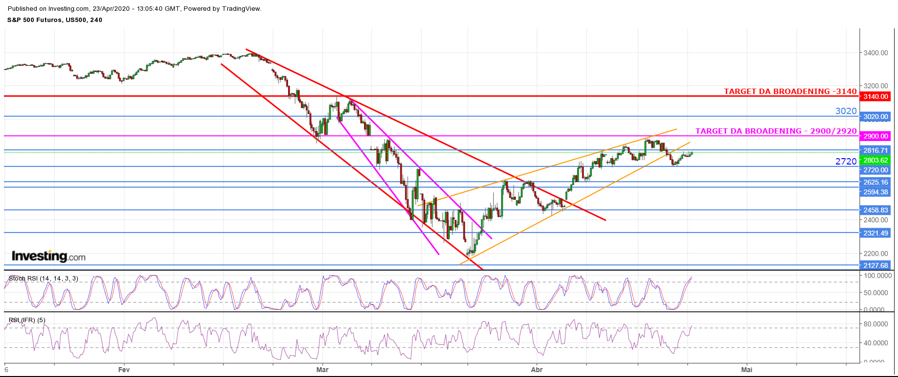 Eu estou de acordo que não acredito no SP500 nem qualquer outro índice a fazer novos máximos, no limite dos limites iria fechar o gap do day 1 das quedas(nos 3337), mas o caminho é para sul, com 90% de probabilidade. Onde já se viu um índice cair 30% e recuperar assim de rajada com o mais rápido crescimento de desemprego de todos os tempos...