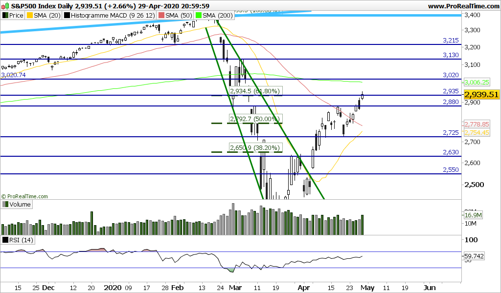 Como referiu anteriormente o J Alves, entre terça e hoje saem os resultados das FAANG, é fácil perceber que o NAS e em particular estas cotadas tem impulsionado o mercado pela sua importância e peso no índice desde os mínimos relativos. A chave para o curto prazo estará aqui e na minha opinião só haverá continuidade do movimento ascendente rodando a aposta pelos sectores ainda mais fustigados pela incerteza, considerados de maior risco neste momento (energia, aviação, banca, entretenimento,etc.). Isso significaria que o mercado está realmente crente numa recuperação rápida.. pessoalmente estou fora mas com bastante vontade de shortar esta euforia toda. Quem espera.. boa sorte a todos.