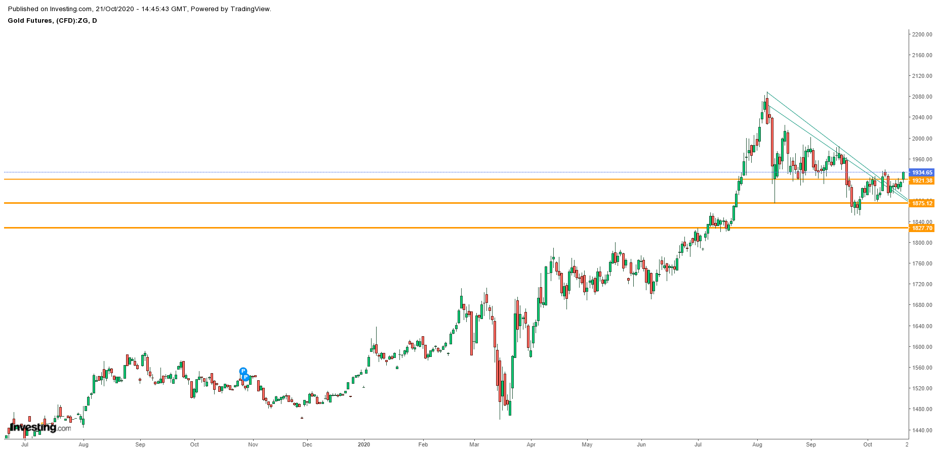 Final de semana, no diário XAUUSD continua dentro desta espécie de canal