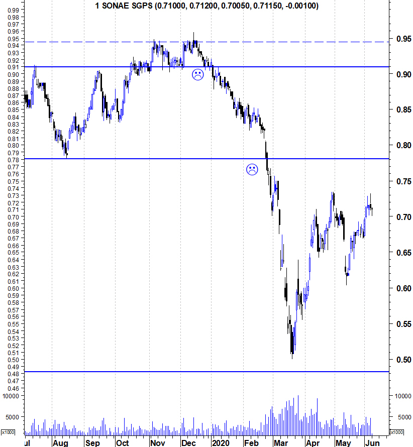 A Sonae já andou mais pujante. Também é verdade que de mínimos subiu uns 40% em um mês. Talvez com esta redução depois ganhe balanço para atacar os 70 novamente.