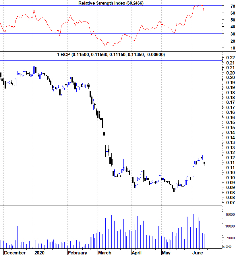 Aqui fica o gráfico do BCP e estou curioso para perceber qual a sua reacção nesta aproximação à zona dos 0,11.