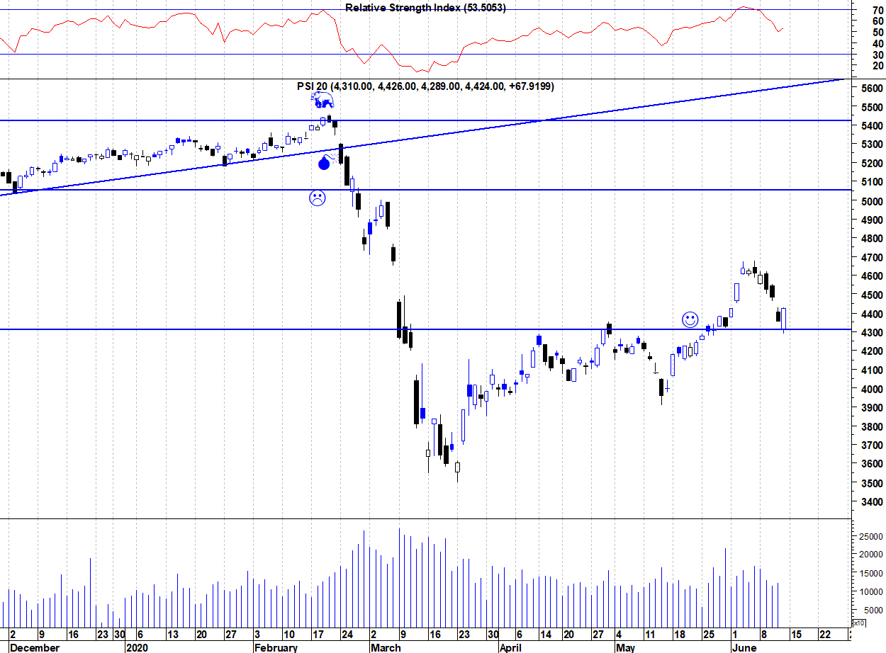 Deixo o gráfico actualizado do PSI que continua a sua correcção das últimas 2 semanas e tenta aguentar-se na zona dos suporte dos 4300 pontos.